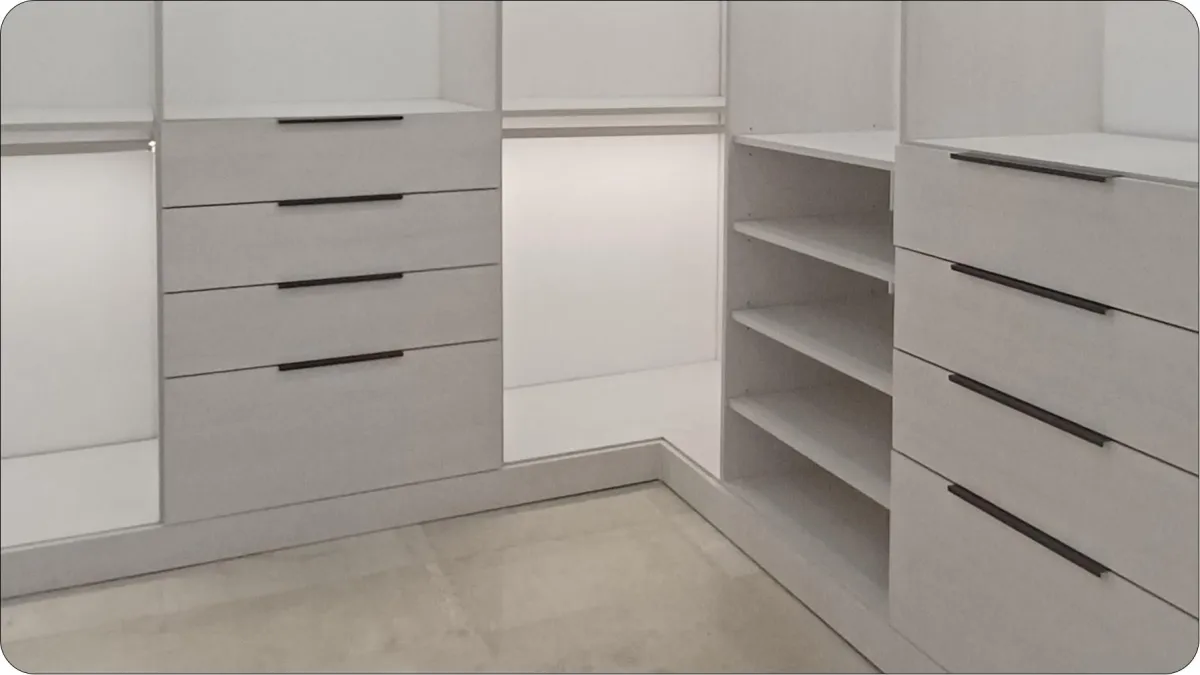 Trabajamos contigo para crear el closet o mobiliario perfecto, maximizando cada rincón de tu espacio.